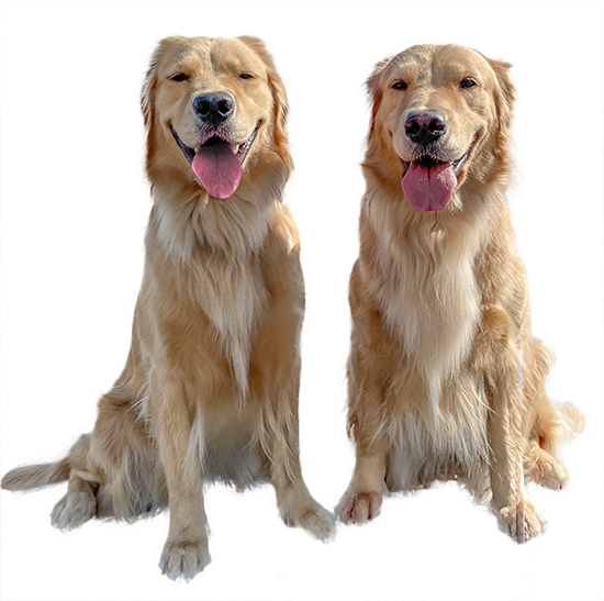 MAX ドライビングスクールの看板犬、ゴールデンレトリーバーのララちゃんとハナちゃんが皆さんをお出迎え。教習の合間にたくさん遊んであげてください。平日の午後に教習所にやってきます!